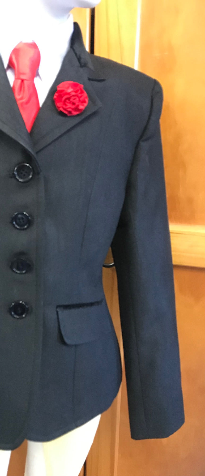 We Have This Black Open/Dressage Jacket With Black Trims and Buttons, Adults Show Hunter Jacket Now Available. This Jacket Is Perfect For Someone Who Loves To Look Neat In The Ring. Available In Adults Size 10 & 14 Only.